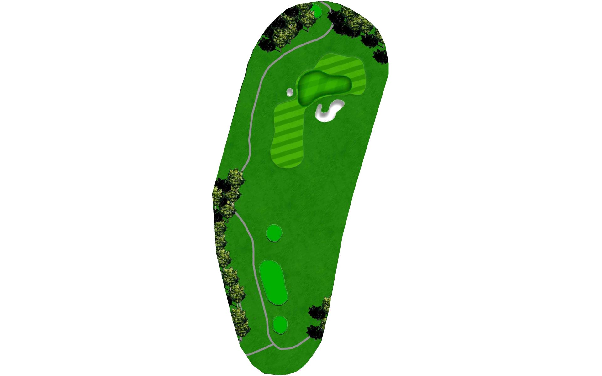 | The first par 5 on the golf course is a long, tough test, where the best strategy is to hug the left side of the fairway the whole way. The drive will have to carry a short, small water hazard and the fairway bunkers left of the landing area. The second will, again, need to miss a larger fairway bunker on the left. The final stretch is peppered with bunkers on both sides on its way to a green that slopes away from the strong landform on the front-right. |