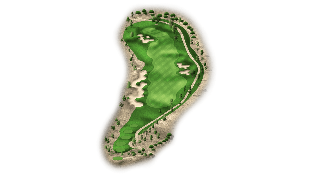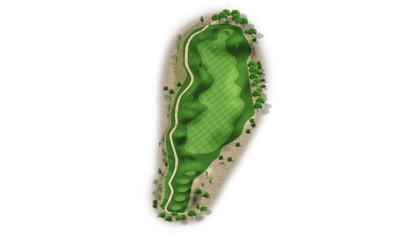 | The fourth hole is the first par 3 on the golf course. Most players will have a mid-to-long iron into this two-tiered green. It’s fairly open, with the exception of a bunker front-left and a desert left of the green. Tee shots that land in the middle of the green will set up a good chance at par. |